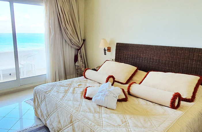 l’hôtel Golden Yasmin Mehari dispose de 200 chambres réparties sur trois étages et desservies par un ascenseur. Le luxe peut se sentir dans chaque détail de la chambre qui est doté d’un décor raffiné et un meuble chic et confortable. Chaque chambre dispose d’un balcon donnant sur la mer ou sur la région, une salle de bain avec baignoire ou une douche, un téléphone, une télévision avec chaînes par satellites, un coffre-fort et un sèche-cheveux. Toutes les chambres sont climatisées, spacieuses et lumineuses. Un service d’étage est mis à la disposition des clients 24/24.